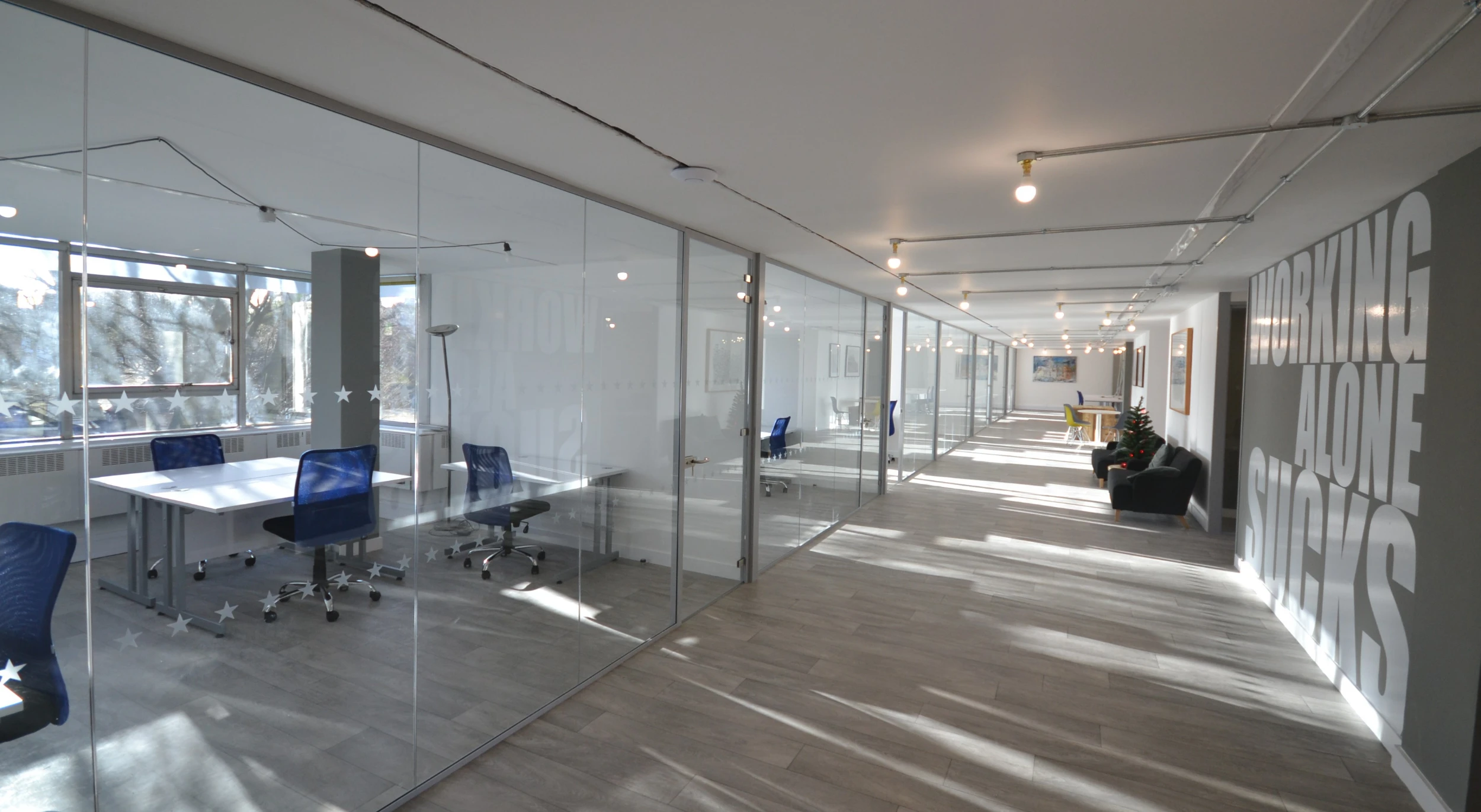Unrivalled in their versatility, partitions can be used for many different things, like for example, transforming an empty room into a purpose built workshop, with rooms for privacy or collaboration.